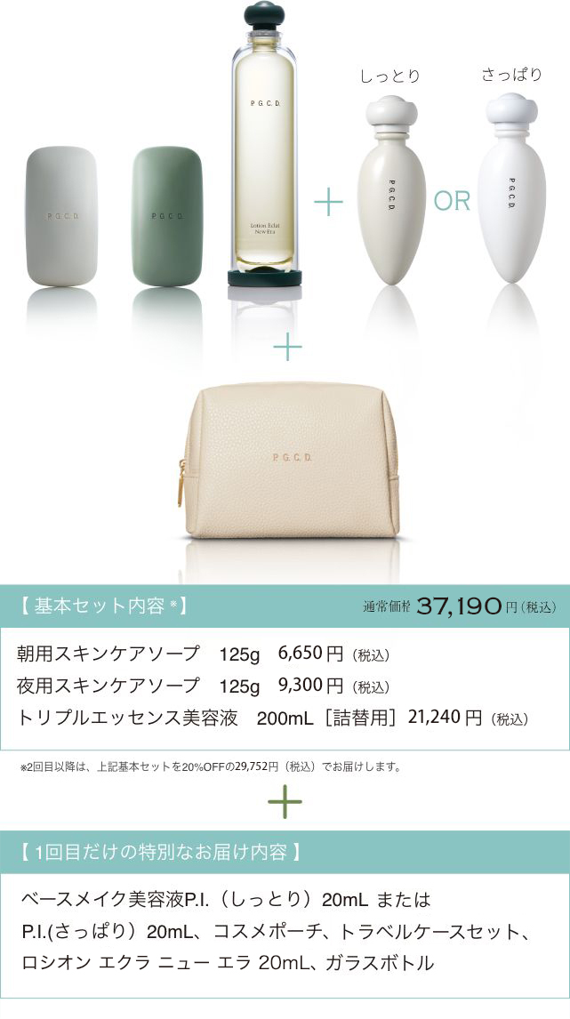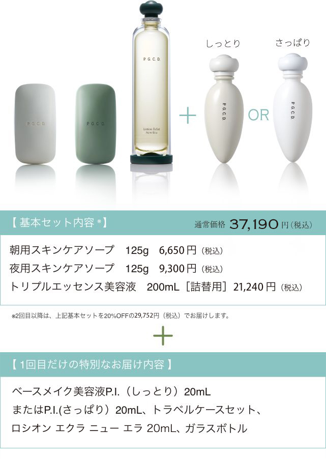 40代女性の美容にかける合計金額は平均¥13,000/月。P.G.C.D.の定期BOXでシンプルケアをはじめると、1ヵ月たったの¥9,917。続けるなら、定期BOXがお得です。